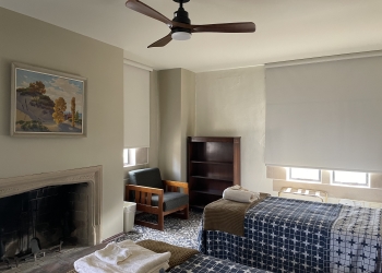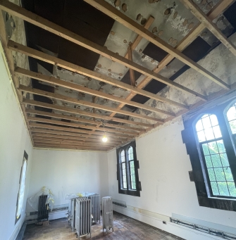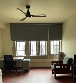 This summer, Room 38 will disappear to become part of the grand renewal of the two residential floors. Room 38 was tucked under a dormer on the third floor, across the alley from the practice room in the neighboring church where choirs and dancers rehearsed. For nearly 100 years, the book-lined student room was where languages and texts were studied and papers and dissertations were written. Students will still pursue that learning in twenty-two other student rooms and studies. But now, enlarged all-gender restrooms and energy-efficient air-conditioning are on their way, as are many other transformations.