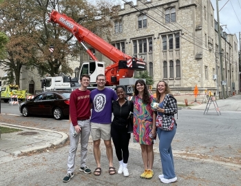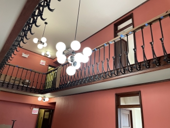 To catalyze student living and learning for the next one hundred years, the Board of Trustees chartered a design and construction team that has expertise with historic buildings and an imagination of future possibilities. Plans focused on more climate resilient and welcoming conditions for the residential floors. Energy efficient air conditioning did not require intrusive mechanicals. All-gender bathrooms provide private changing areas and more accessible facilities. New flooring, lighting, and paint schemes enhance each room. Old acoustical tile ceilings were removed; limestone window surrounds were restored. Sparkling lights now illuminate the atrium.
